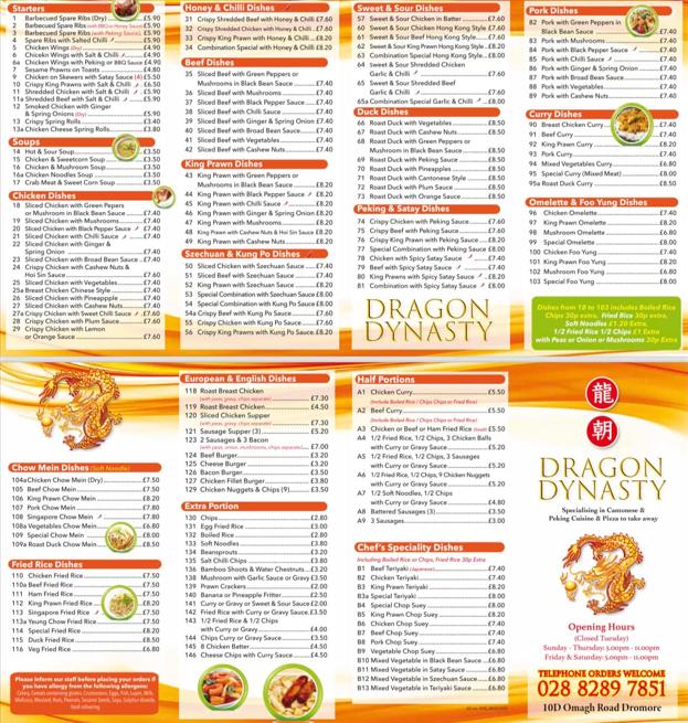 Located at 10A Omagh Rd, Dromore, Omagh BT78 3AJ, Dragon Dynasty showcases the essence of authentic Chinese takeaway dining. The establishment is easily accessible with free street parking, allowing for a hassle-free visit. With an emphasis on convenience, Dragon Dynasty accommodates a variety of dining preferences, from quick pickups to laid-back dinner seating. The atmosphere feels casual yet welcoming, ideal for gatherings or meals on the go. Recognizing the importance of inclusivity, the restaurant features wheelchair-accessible seating and facilities, ensuring that everyone can enjoy their delightful offerings. Open every day of the week, this popular spot stands out for its late-night options, making it a fun culinary choice for nighttime cravings. Whether planning a family dinner or a simple takeaway, Dragon Dynasty excels in meeting diverse needs while serving high-quality Chinese dishes.